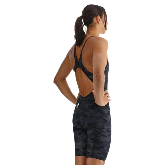 Il costume TYR Venzo Camo Open Back da donna è progettato con una struttura in fibra senza attrito e realizzato in nylon e lycra. La tecnologia Surface Lift e la gabbia di compressione Endo Max garantiscono una forma e un sostegno perfetti. Inoltre, il design Hydrosphere e le cinghie Endless Flex garantiscono la massima flessibilità. Con la posizione delle gambe a scatto per una maggiore stabilità, questo costume approvato dalla FINA è perfetto per tutti i nuotatori che vogliono ottenere le massime prestazioni.